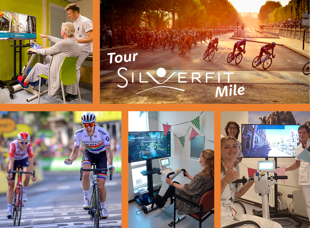 Samen met patiënten en cliënten van ruim 60 ziekenhuizen en woonzorgcentra doet Noordwest op locatie Alkmaar mee aan de SilverFit Tour de Mile. We gaan zoveel mogelijk kilometers fietsen tijdens de Tour de France (26 juni – 18 juli). De fysiotherapeuten van Beweeg je beter! organiseren zo een leuke en toegankelijke beweegactiviteit voor patiënten. Want bewegen draagt bij aan een sneller herstel en minder kans op complicaties. Met het thema ‘Tour de France’ is er een extra motivatie om met de wielrenners mee te fietsen.