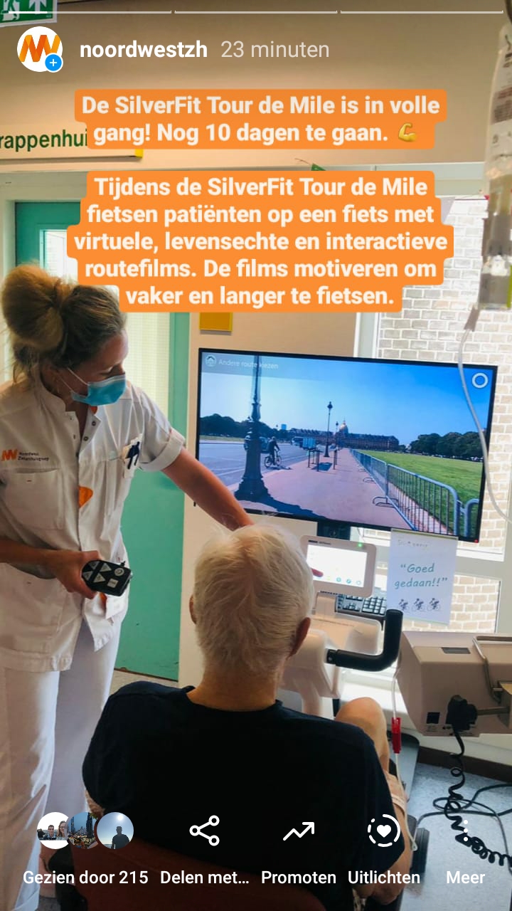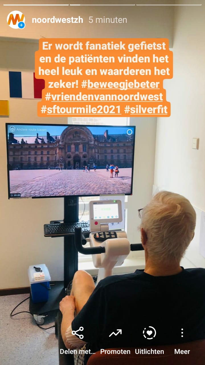 De SilverFit Tour de Mile is in volle gang. Er wordt fanatiek gefietst. De patiënten vinden het heel leuk om aan de Mile mee te doen.