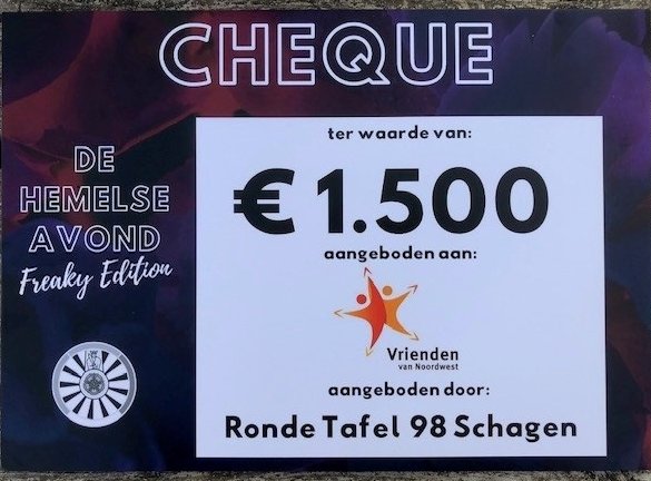 Wij bedanken Ronde Tafel Schagen voor de mooie bijdrage die we mochten ontvangen. Met het organiseren van de Hemelse Avond is geld ingezameld voor 7 goede doelen. We zijn erg blij dat we dit bedrag kunnen gaan inzetten voor de aanschaf van een Qwiek.up op de spoedeisende hulp in Alkmaar.
