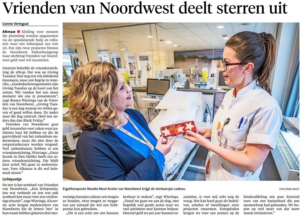 Hoe leuk is dat! Onze #GivingTuesdayNL actie is opgevallen bij RTL Nieuws en het Noordhollands Dagblad. Met twee mooie nieuwsitems tot gevolg. Bekijk het RTL filmpje. Lees het artikel uit het Noordhollands Dagblad.