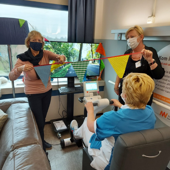 Wat krijgen we veel positieve reacties van patiënten op alle fiets- en beweegsystemen in het ziekenhuis! Dankzij verschillende sponsoren en donateurs heeft Vrienden van Noordwest weer een aantal nieuwe systemen kunnen realiseren. ‘Echt, iedere patiënt is positief en blij verrast met alle mogelijke virtuele routes en spellen’, vertelt Marlou Staal, fysiotherapeut en projectleider Beweeg je beter!